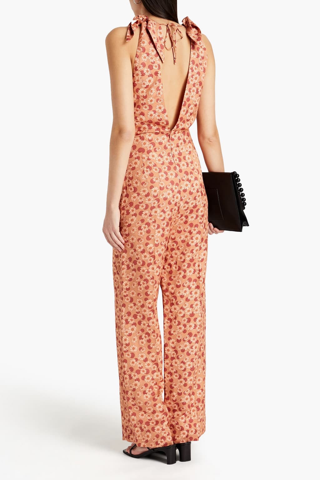 A playful floral print jumpsuit for a chic and easygoing style.